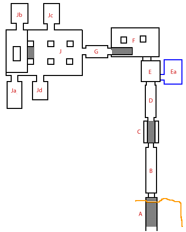 E - well shaft(undecorated) Ea - side chamber on the bottom of shaft(undecorated) F - 2-pillared hall