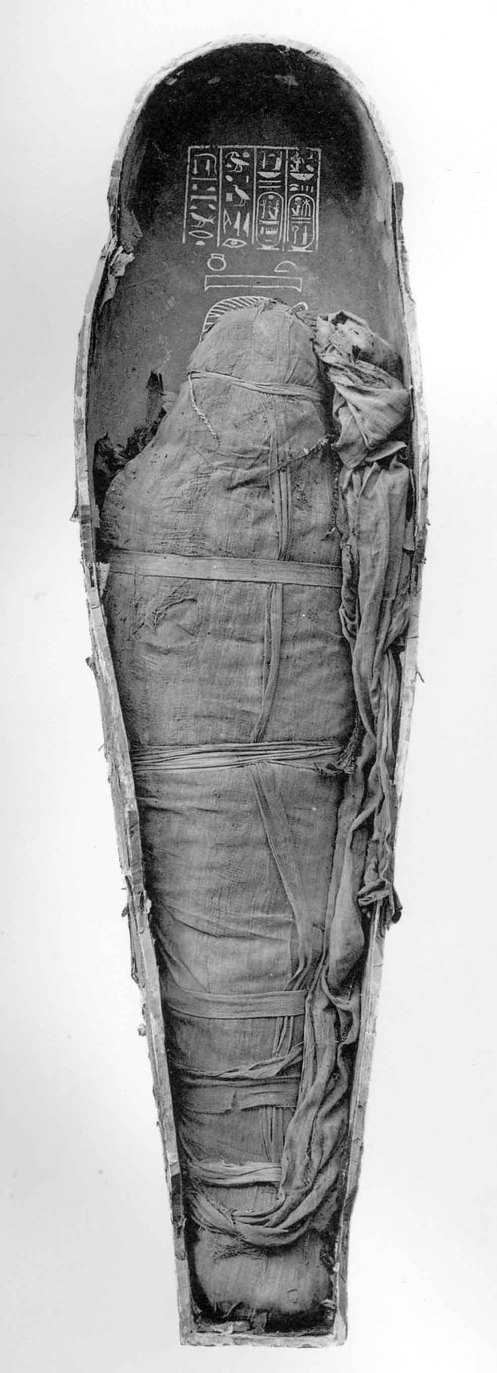 in a coffin inscribed for Ramesses III, covered with a lid inscribed