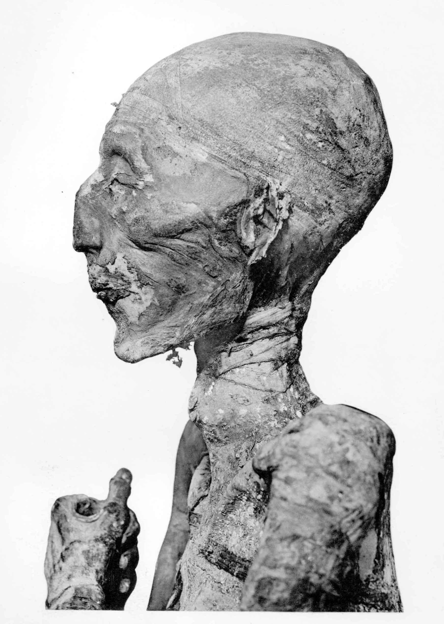 . He had originally been buried in KV43. Length of mummy - 171,0 cm. Found in western side chamber